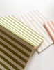Who doesn't love stripes? Stripes that adapt to everything in every season are now available in Fin-style notebooks with a variety of color options. You can create a small striped notebook series featuring your favorite colors. If you're having trouble making a decision, stripes are the most stylish way to stand out! About Fin Studio Notebooks; From printing the covers as the first to cut the edges as the last step, we craft all our notebooks individually. We sew them individually, fold them, and use a wooden book press. Features; - Available in 2 sizes, + A6 (travel size 10x14 cm) + A5 (14.8x21 cm) - Blank inside - 60 pages - Inner pages FSC certified 100gsm acid free paper & colour is ivory - Cover 270gsm G.F. Smith Paper - Single sewn - Comes with Biodegradable Cello Bag*